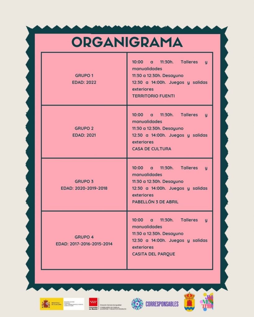 Esta actividad ha sido financiada a través del programa Plan Corresponsables del que ha sido beneficiario el Ayuntamiento de Fuentidueña de Tajo, por lo que la cuota de uso del servicio tendrá un coste inferior.